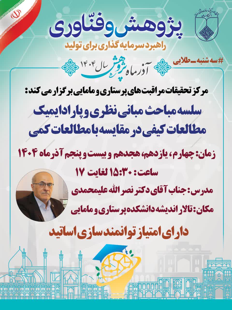 دومین سه شنبه طلایی در آذرماه 1404 به میزبانی مرکز تحقیقات مراقبتهای پرستاری و مامایی برگزار شد. سه شنبه های طلایی عنوانی است که در آن سلسله کارگاههای پژوهشی توسط مرکز تحقیقات مراقبتهای پرستاری و مامایی از ابتدای مهر ماه 1404 آغاز شده است. دردومین سه شنبه طلایی آذرماه که در تاریخ هجدهم آذر برگزار شد از سلسله کارگاههای آشنایی با فلسفه و پارادایم تحقیقات کیفی در مقایسه با تحقیقات کمی رونمایی شد. این کارگاه که با استقبال بسیار خوب اساتید و دانشجویان روبرو شد در تالار اندیشه دانشکده پرستاری و مامایی برگزار گردید